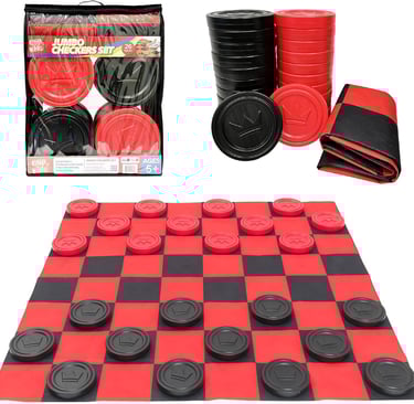 This jumbo checkers set is ideal for children ages 4 and up — young enough to enjoy the tactile movement of large pieces, and old enough to start grasping the concept of strategy and turn-taking. The larger pieces make it easy for small hands to pick up and place, encouraging confidence and independence in play.